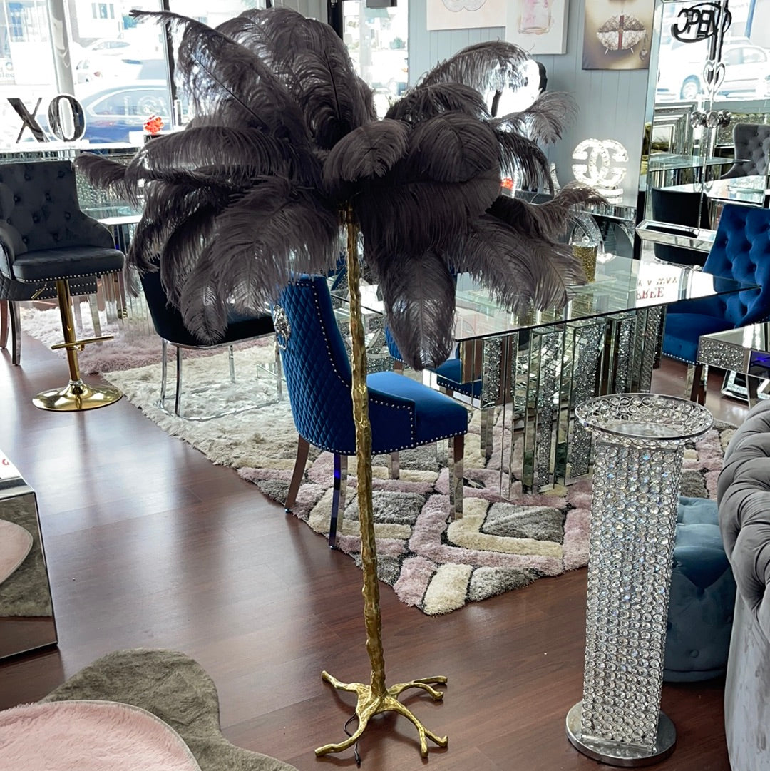 Glam style grey feathered palm tree lamp. Available in multiple colors.