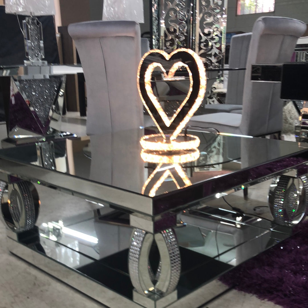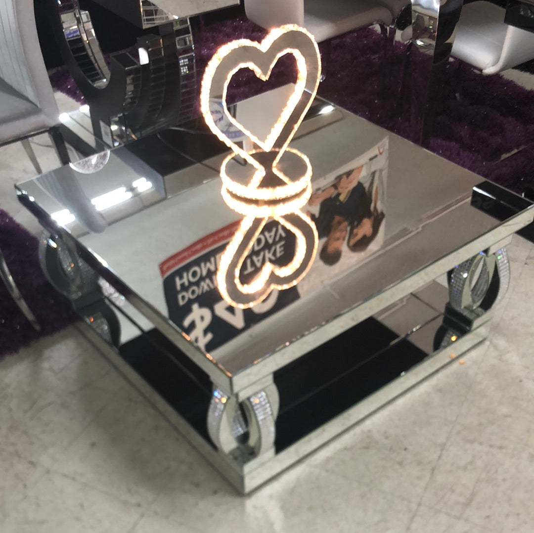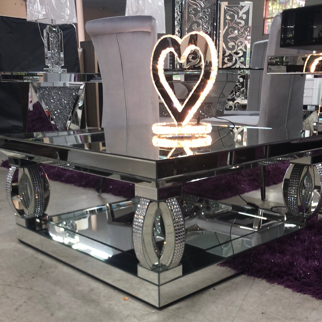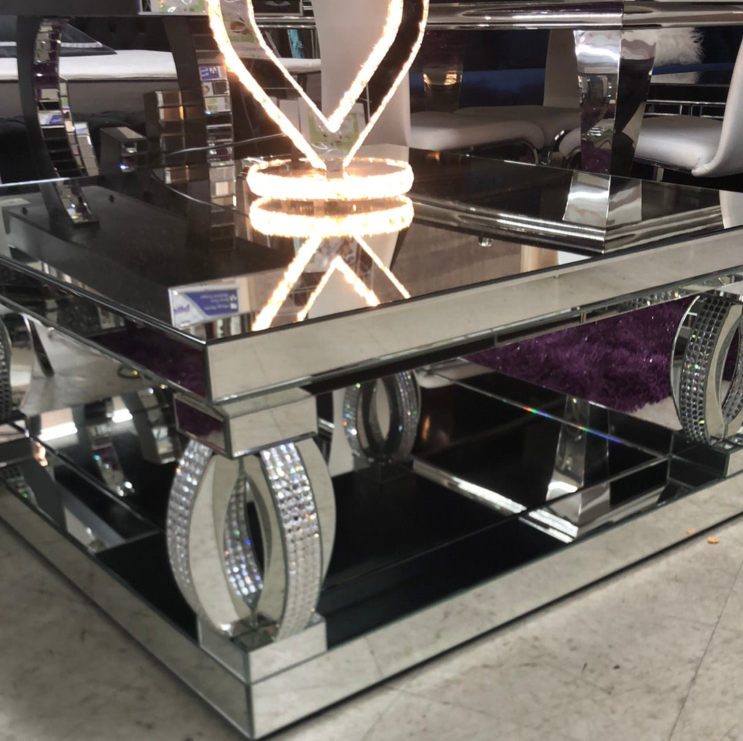 New Glam Style Mirrored Occasional Table with Decorative Diamond Encrusting!